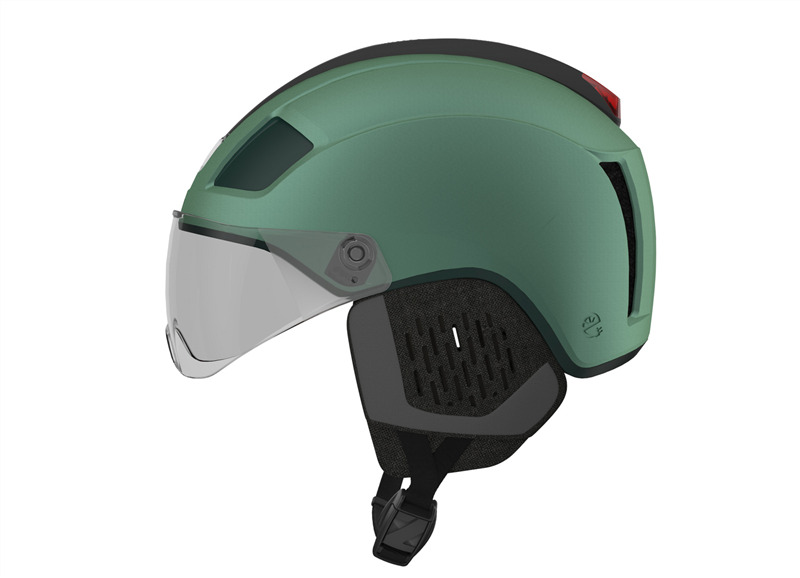 The rechargeable 360° SMART LED, complete with an automatic brake light, ensures you’re visible from every angle. The integrated lens shields your eyes from wind, rain and insects, while still allowing you to wear your own eyewear. The LED can be swapped for a ventilation slider that optimizes airflow in summer and retains warmth in winter, enhanced by the included removable Winter Kit.