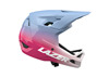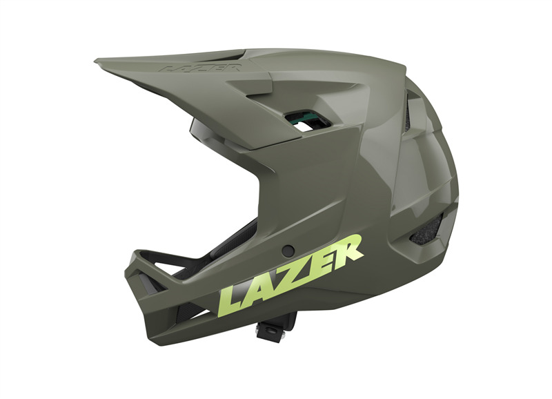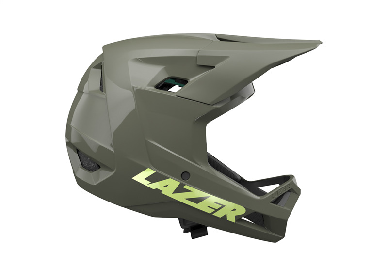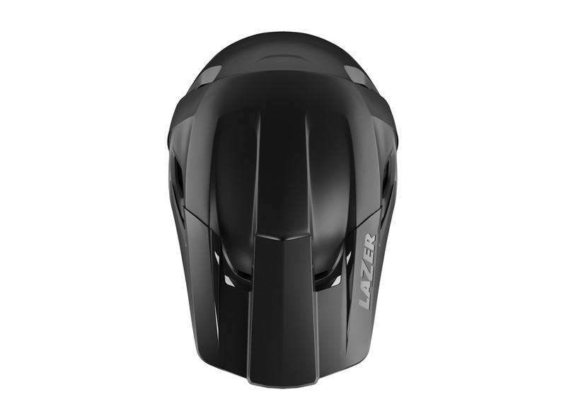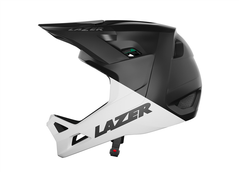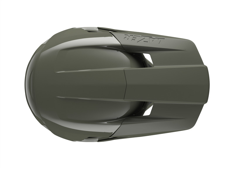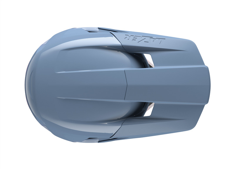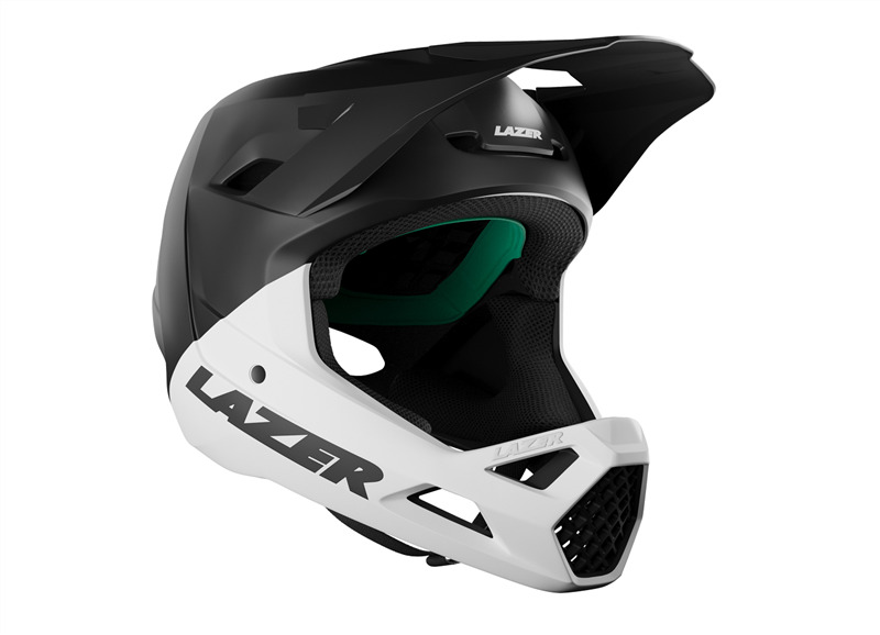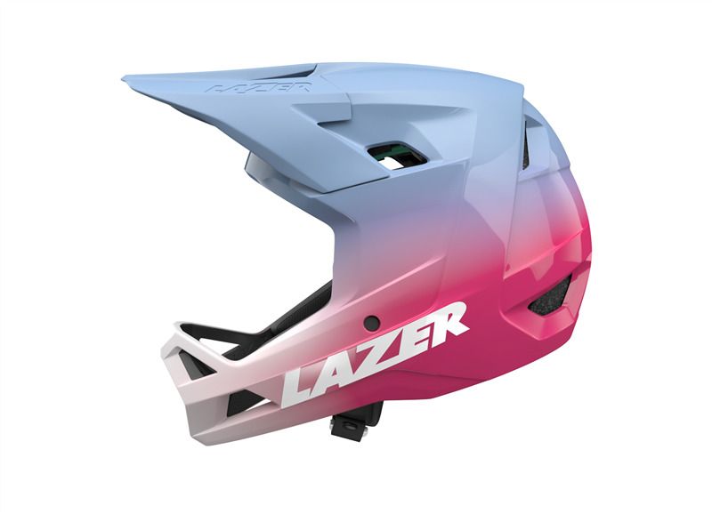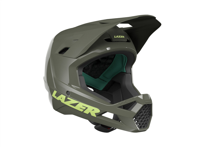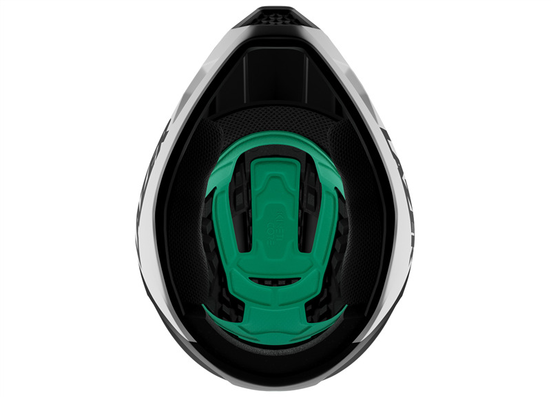 An integrated breakaway visor is designed to snap off in the case of impact to protect the rider's neck.